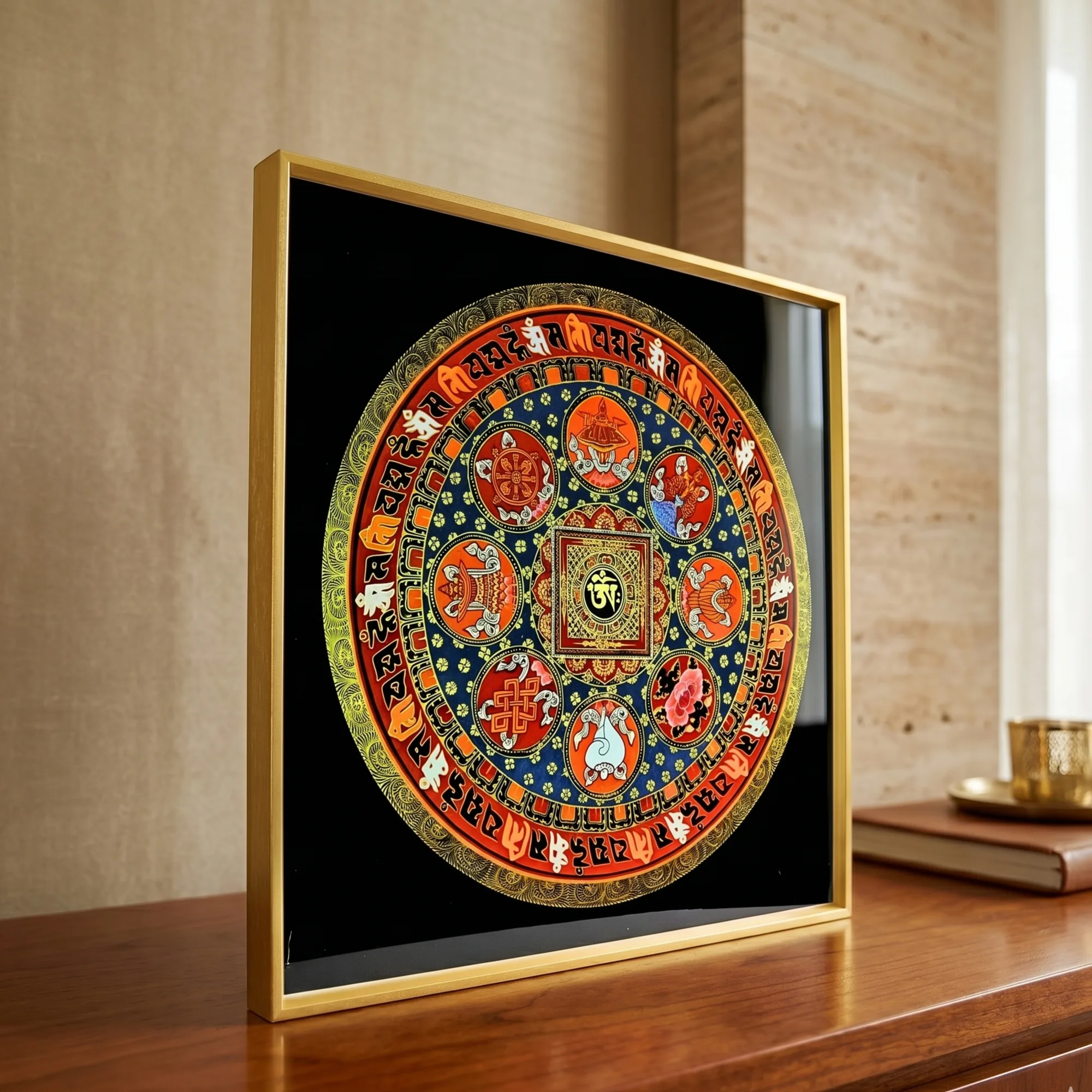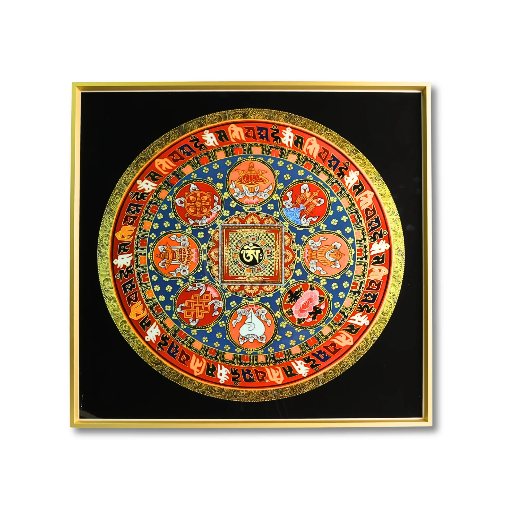 8 Auspicious Om Hum Mantra Mandala Tibetan Thangka Frame