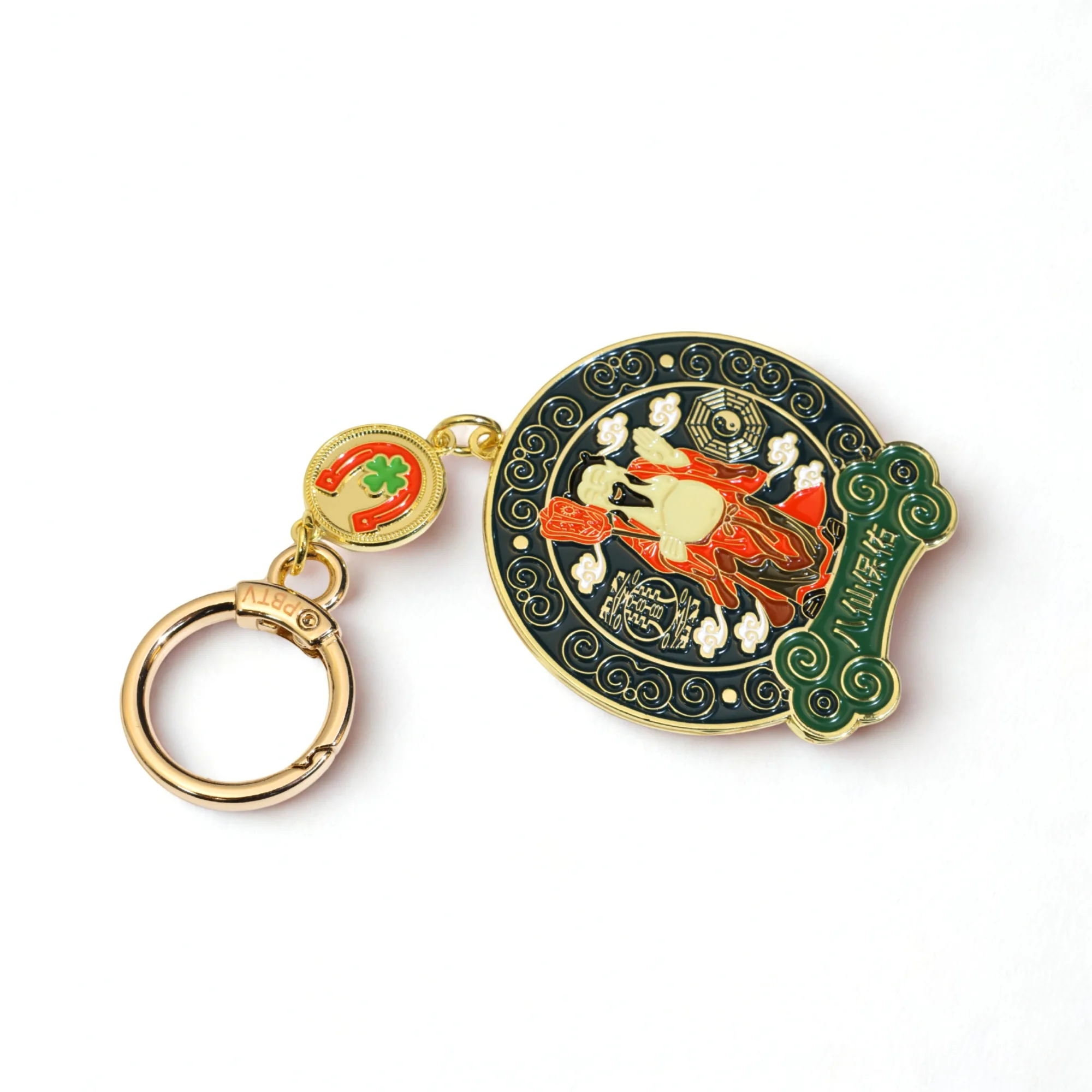 Featuring the leader of the Eight Immortals, Chuan Chung Li, who carries the blessings of having good health and stable luck. Ba Xia Bao You upholds their blessings. And at the front side of this amulet lies the Taoist “Luck Transformation,” indicating that what you wish in life will be yours. Together with the Vajrapani Mantra engraved on this amulet, you will be protected from harmful energies. Perfect for people seeking fame, good fortune, and lost in life and hoping that their wish will someday be theirs.