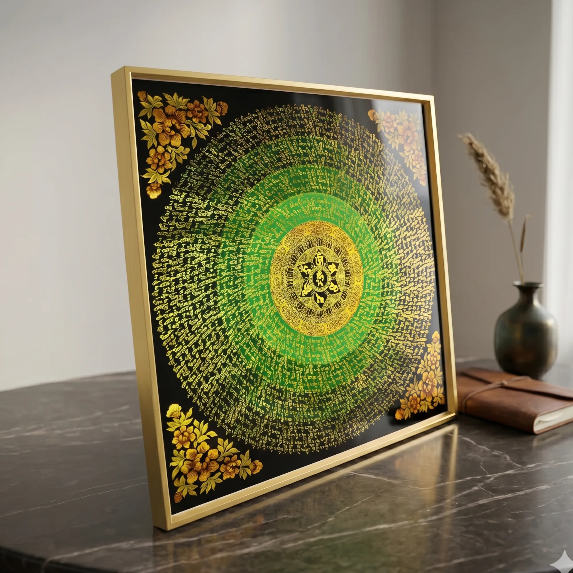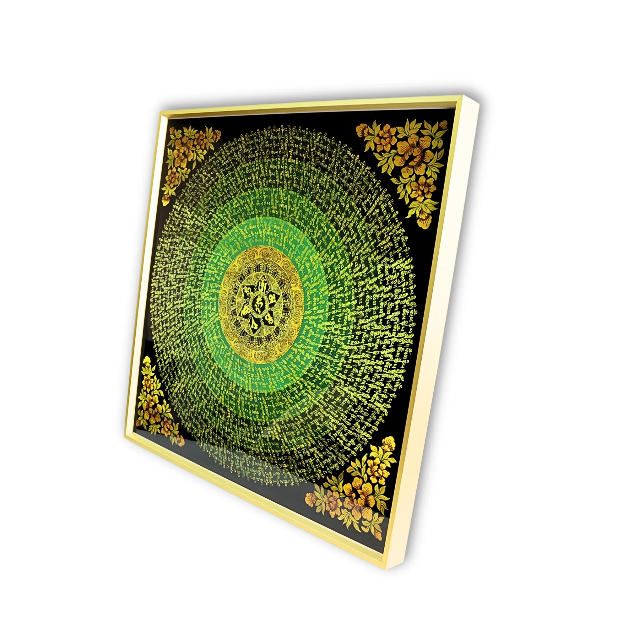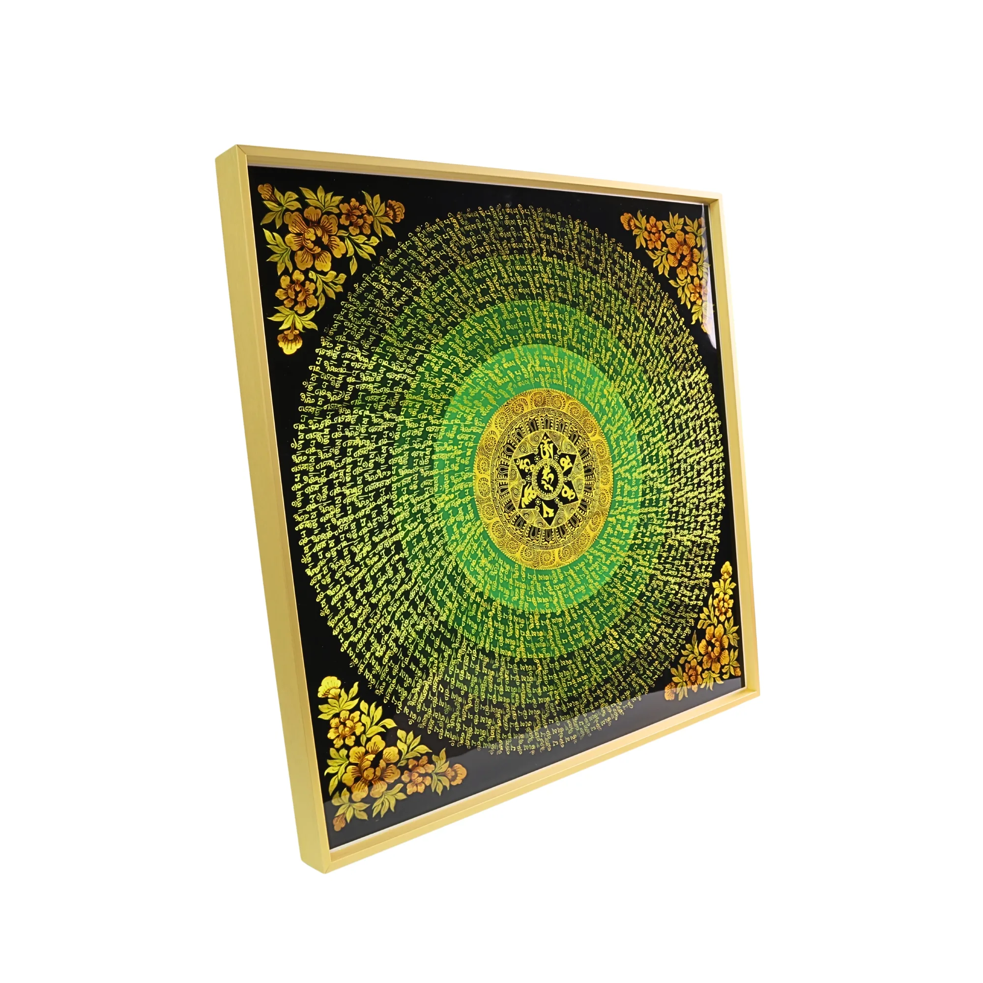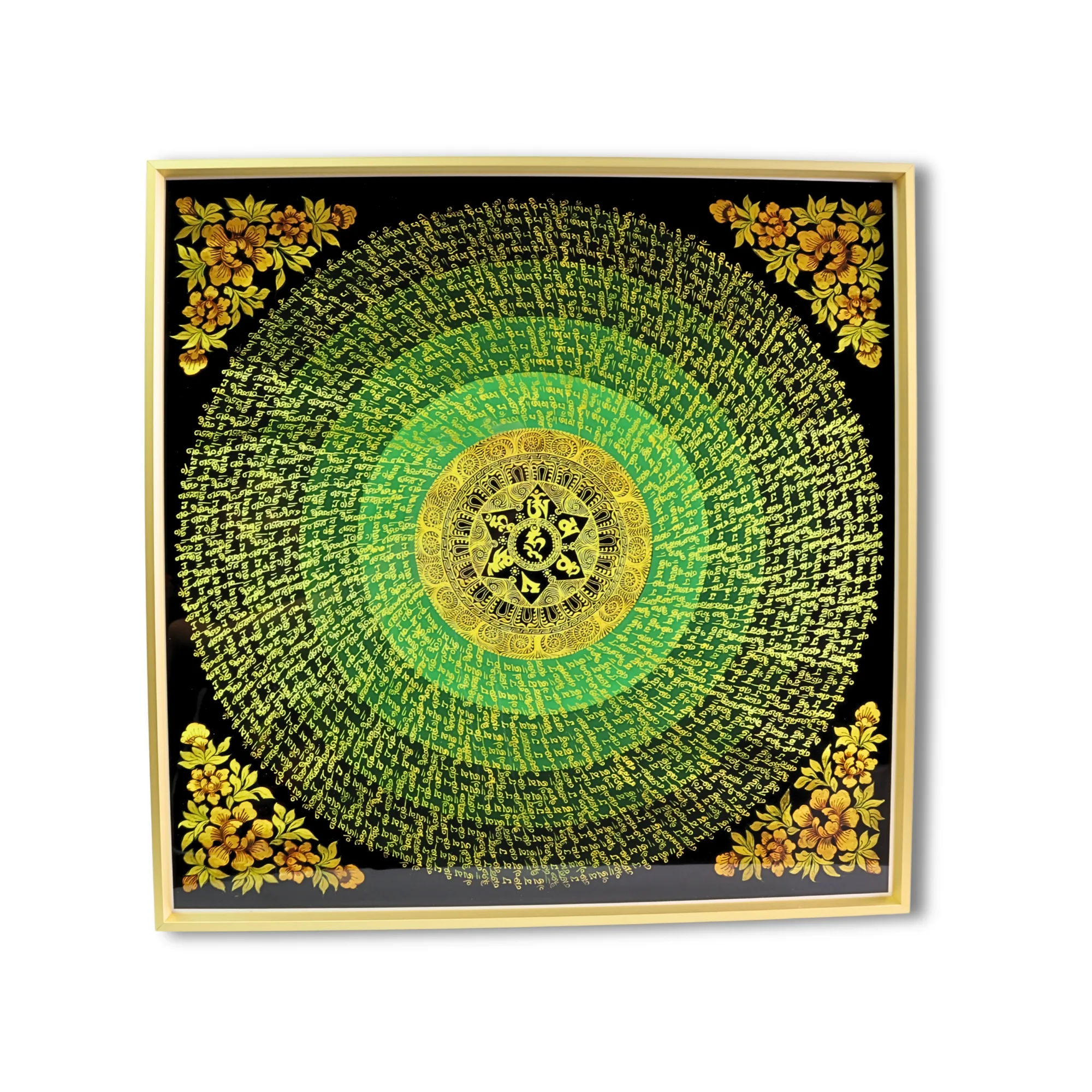 Flower Om Hum Mantra Mandala Large Tibetan Thangka Frame