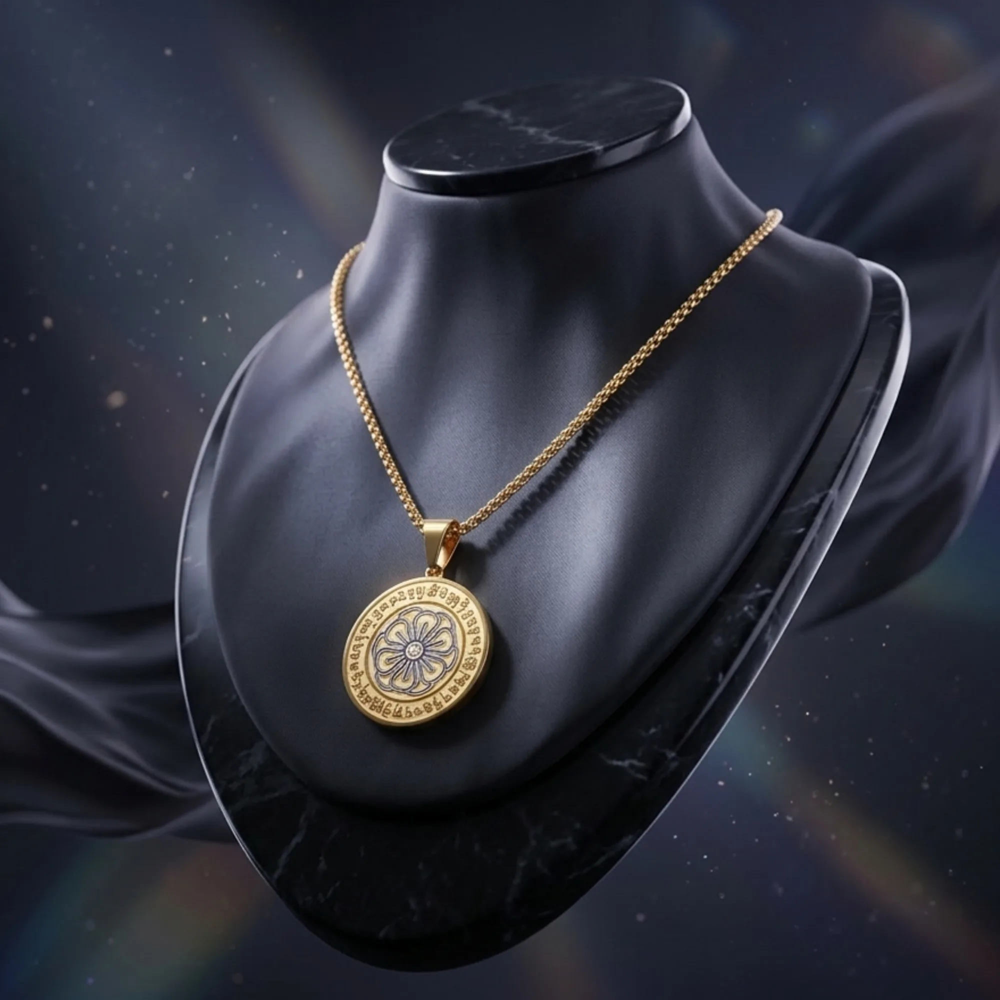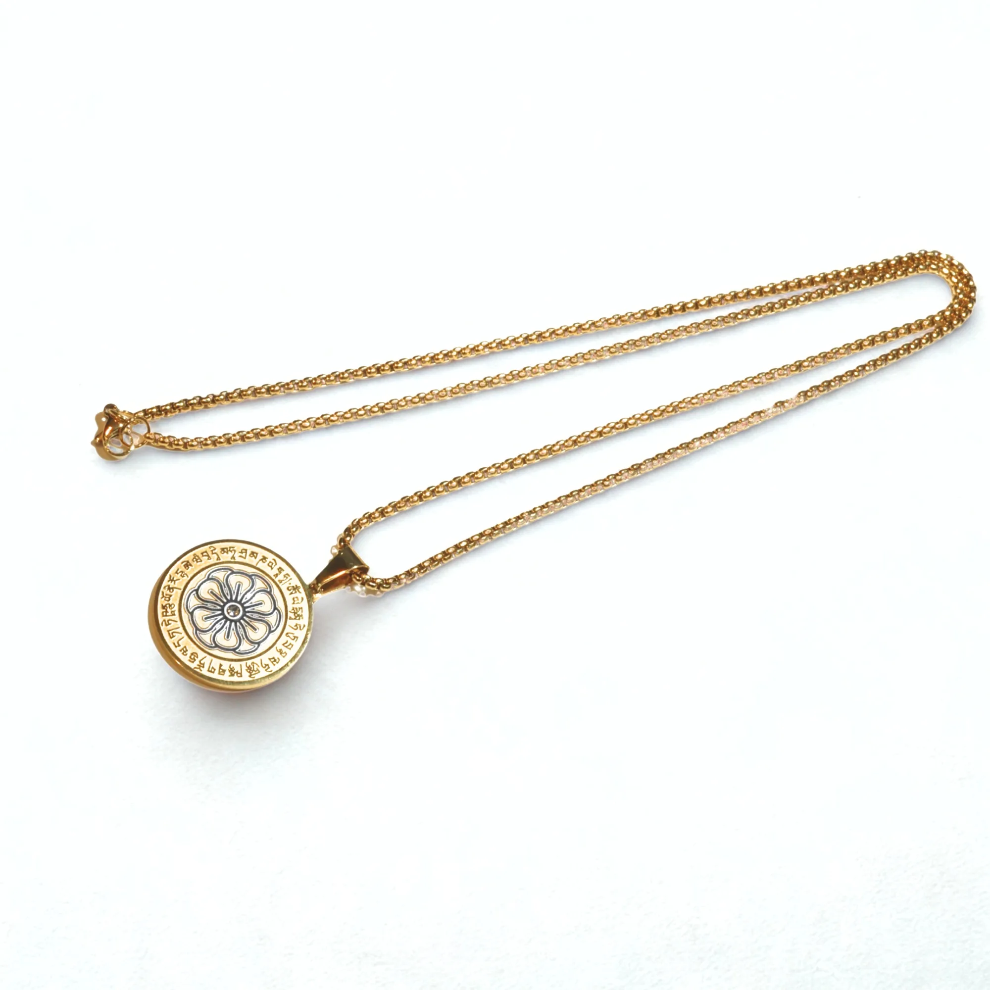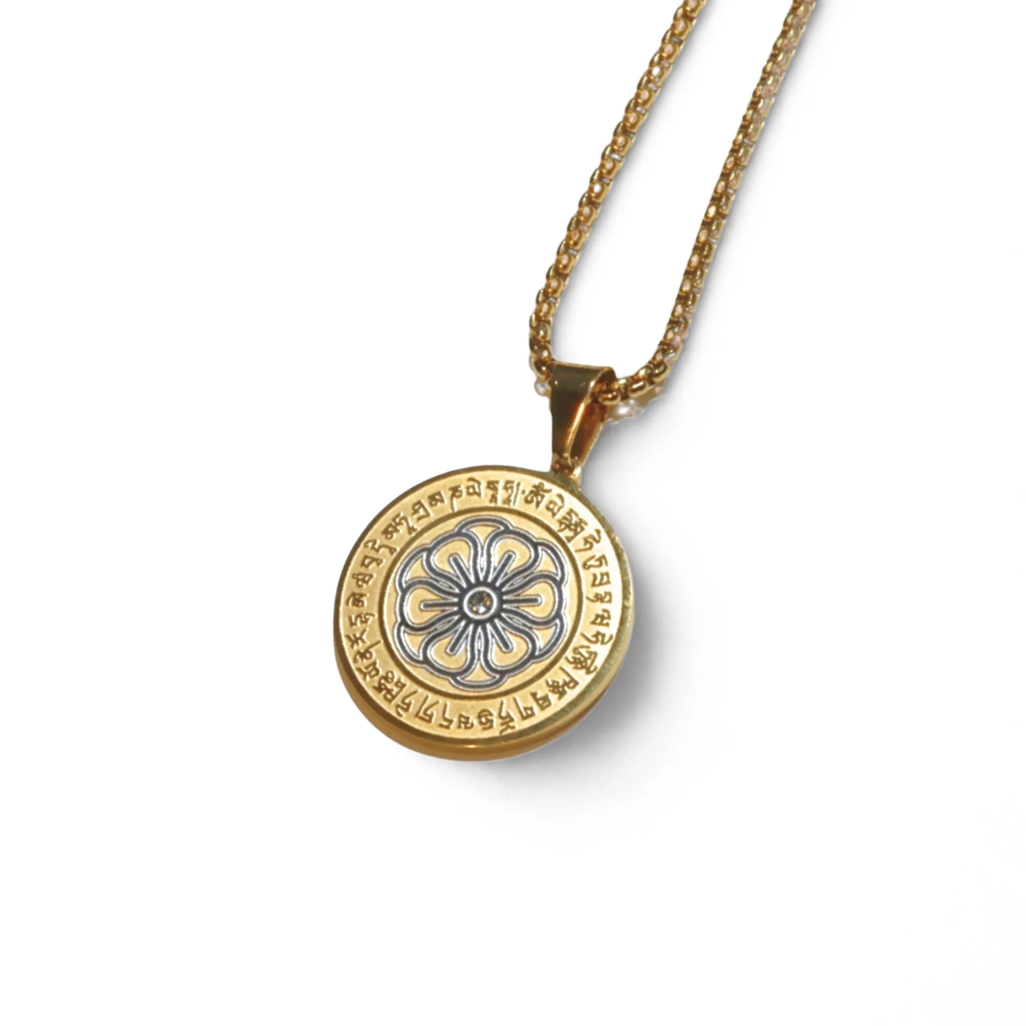 Happiness And Wealth Amulet is plated with 18k gold and invites Dakini and other symbols to fill your life with magic! Carrying this, it can grace you with protection and luck but the main highlight of this amulet is the happiness and wealth that it invites into your life as it features the flower that represents it.