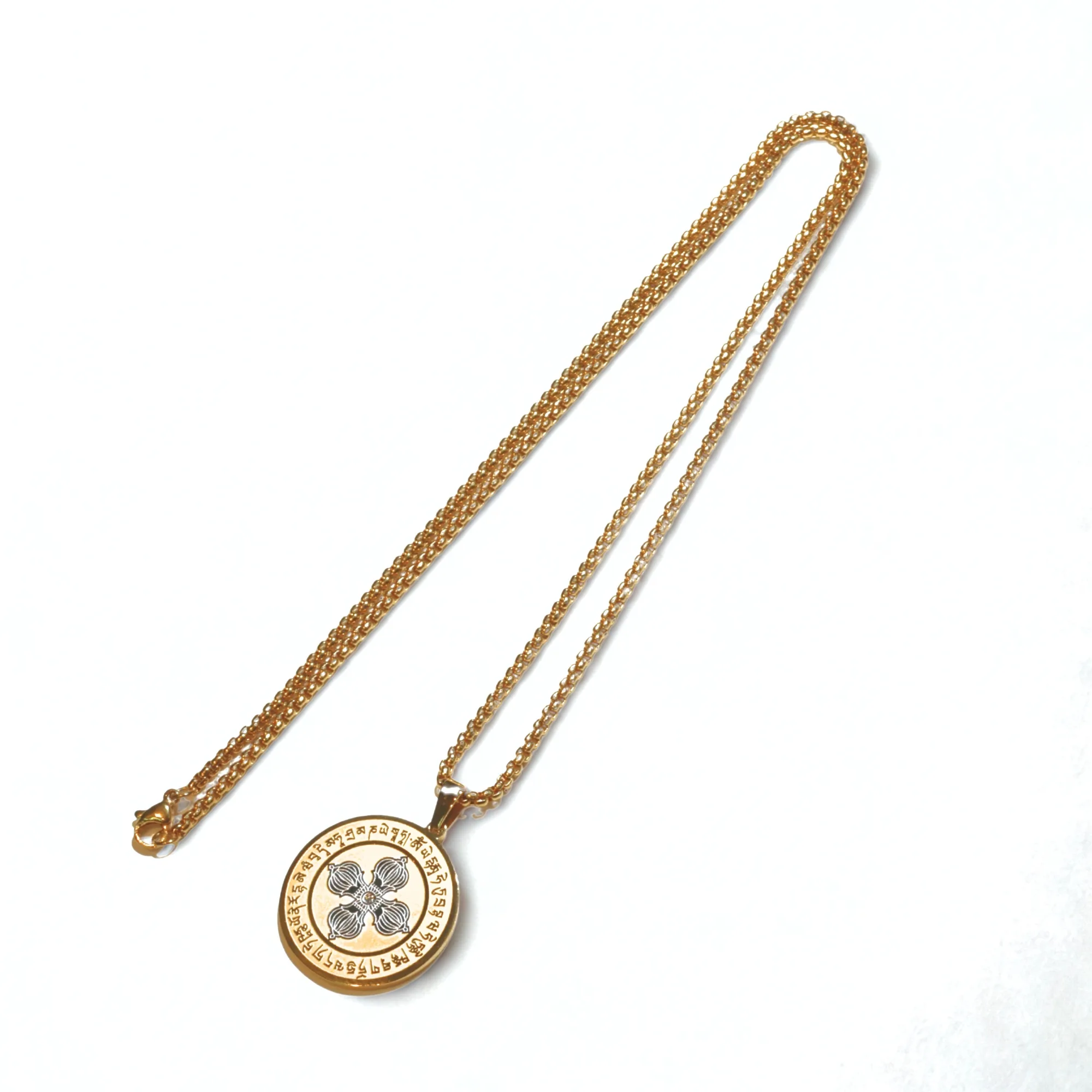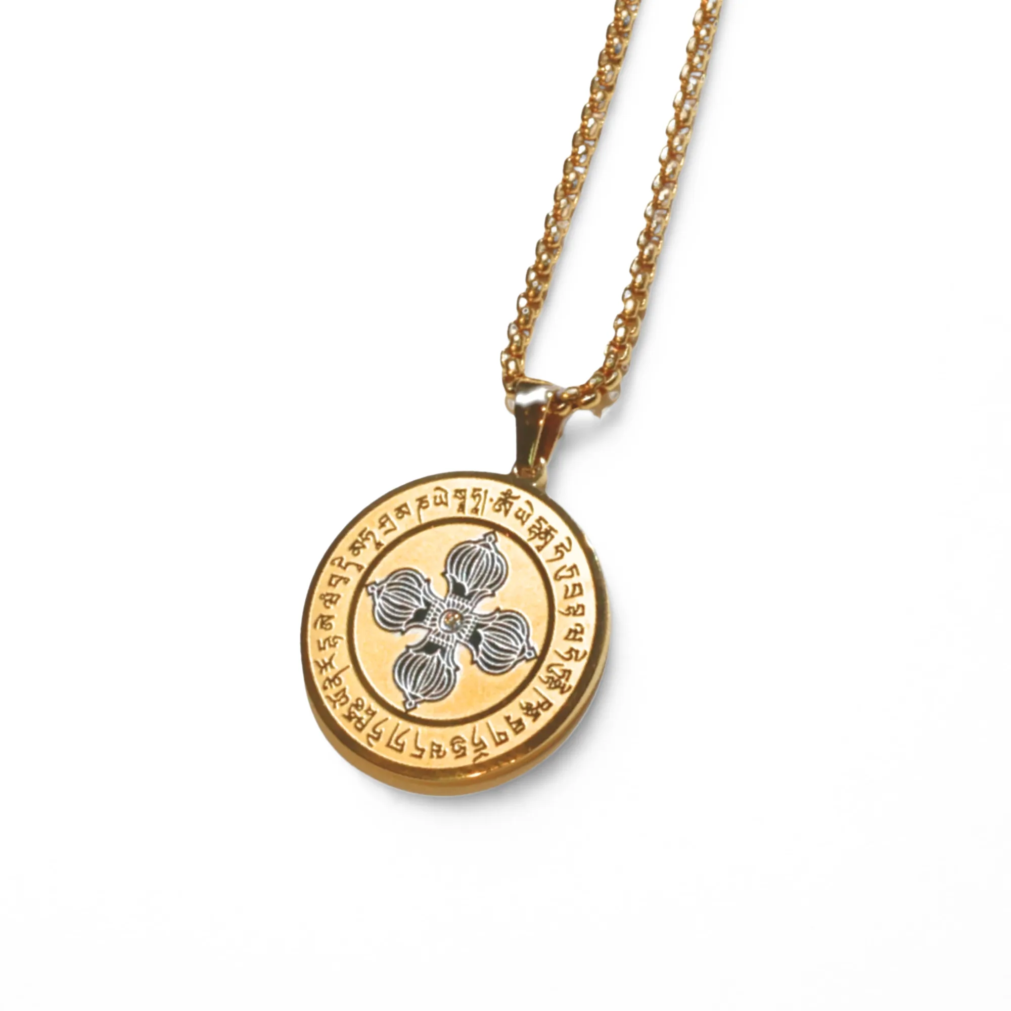 Carry this amulet, and you will be lucky and protected against evils! This is painted with 18k gold. The amulet comes with the symbol of Dakini that gives you magic. It also features the symbol of Double Dorje with a mantra that helps to make your wishes come true. Above all, this makes you immune to negative energies.
