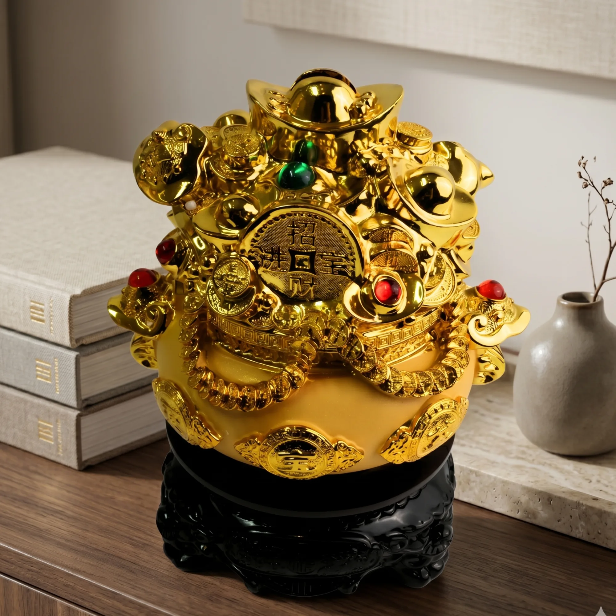 The best wealth pot is here! This Wealth Pot is ultimate and packed with overflowing treasures that signify abundance and wealth in your life. It is a stunning decoration inside your home as it comes with never-ending blessings and luck coming in all directions, especially in your workplace. Use this to defend you from the financial crisis and bad fortune.